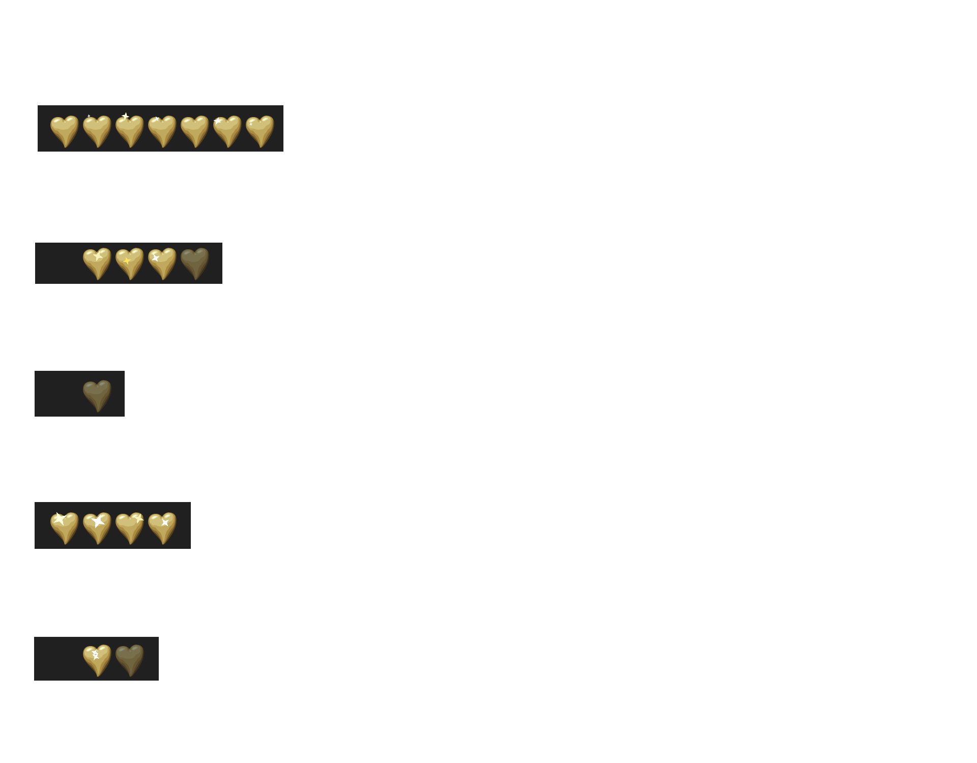 The hearts indicate the number of sections in each topic.